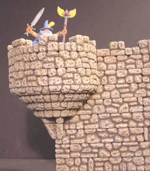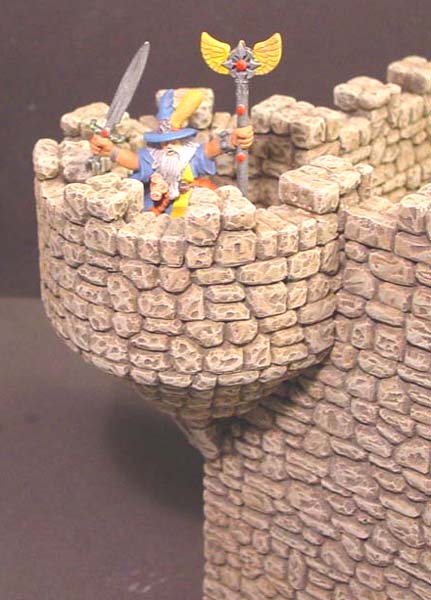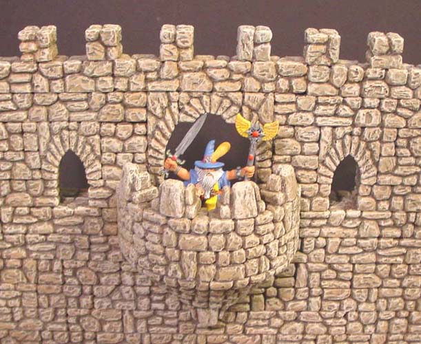| 4. | Click on the photo for a larger view. The large arch behind the miniature is a combination of arch blocks from mold #70. The smaller windows were also arches from mold #70. The miniature was made by Games Workshop. |