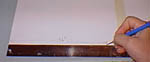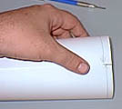 | 1. | We'll start by making a circular form to build around. Take 3 sheets of typing paper and line them up end to end in a perfectly straight line. Tape them together as shown. Measure 9 3/8" from one end and put a mark. Roll up the paper and match the line you've drawn to the edge of the paper. This will form a fairly exact 3" diameter circle. |