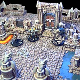 2. | If you only used mold #70, you could make just the wall sections. Then you could use maps that are currently available from MageKnight Dungeons(TM) and place the walls directly on the map pieces they provide as shown on the photo. The paper prints are well done, colorful, and much easier than creating and painting the floor tiles yourself. Once again, you can only get them from MageKnight(TM). |