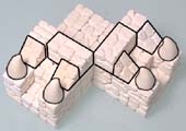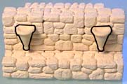 1. | To build the basic set shown here, you will need to cast the #265 Large Flagstone mold 24 times and the #70 Fieldstone Mold 24 times. I know that sounds like a lot of casting, but you are going to cover a very large area of floor with these tiles. You'll paint these pieces using the Earth Tone Painting Instructions. Further below are instructions on how to build a more decorative version of these wall pieces using mold #80, the Dragon's Teeth mold. |