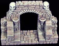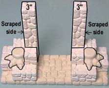 18. | Add 4 small arches and 2 medium arches on each side. Place the small arches with the smooth scraped side down. Finish the piece off with a 2" block across the top, 2 skulls and 2 torch sconces. |