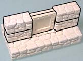 17. | Add 2 regular blocks (on end), 2 square blocks and 2 small arches. Next add two 3/4" blocks on each end and top off the doorway with 2 large arches. |