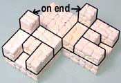 12. | 1. Glue the 5 blocks together that form the base. 2. Glue down 4 angle blocks, one on each side of the base. 3. Glue four regular blocks (on end) on each corner. Make 2 of these pieces. |