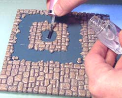 For this section, you will need mold #266, the Large Flagstone Accessory mold. This section will show you how to paint the water and lava tiles, as well as how to paint the door and rubble pieces.