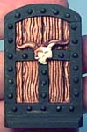 8. | Next dry-brush silver paint over top of the black. Be careful not to get it on the wood panels. Finish the door by painting the skull white. An ink wash will help the details of the skull stand out. Feel free to experiment with different colors for your door. Colored doors might only open with colored keys, they might be more resistant to bashing, or have magical properties that only allow certain creatures to use it. |