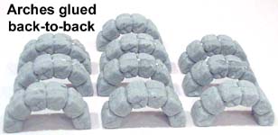 Start by gluing together 10 arches and 10 doors back to back. Sometimes the back or scraped side of the door will be a little concave. If you sand the back of the doors they will glue together a little better. |