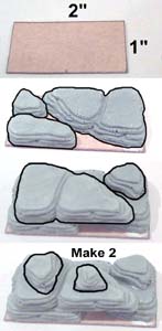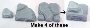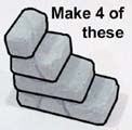 4. | We're going to make two stair pieces to show where figures can move from level to level. For my plans shown here I have only made two of them. If you have extra blocks or castings from mold #282, you can make more stair pieces if you like. |