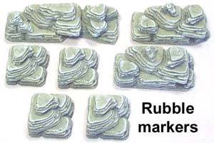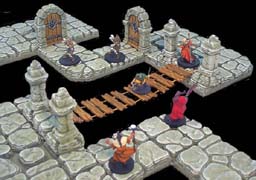 16. | Glue the posts on top of the bases. After they are dry, cut the excess cardboard off from around them. For painting instructions, see our Painting Instructions page. To see how to make the bridges and other special painting instructions, see our Tips & Tricks 20 page. This completes the accessories for the Descent game. |