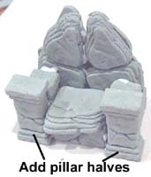 11. | Make 2 pieces from above. Glue these two pieces onto the back of the throne. Use lots of glue because these pieces do not have flat edges and will fit very loosely. Add pillar halves onto the front of the throne. |