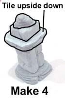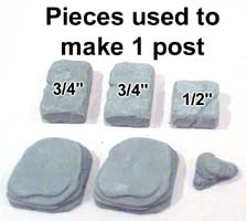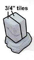 15. | We will need 4 posts. Start with the tile shown and glue two 3/4" long tiles back to back on it. Then glue a larger tile upside down on top of it. Cap it off with a square block and the smallest stone. |