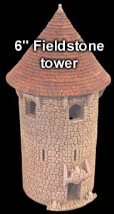 My original building instructions for the round towers did not include how to build a tower with a roof attached. Instead the top was finished with crenellations.