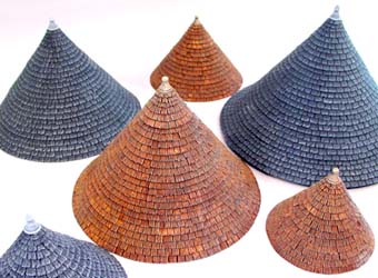 There are 2 kinds of conical roof molds. Both of these molds contain the same basic block shapes. Either of these molds can be used to make conical roofs for 3", 4", 6" and 8" diameter towers.