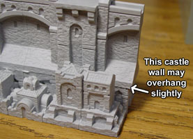 The castle wall may slightly overhang on the right side of the B2 piece. This will not cause a problem when you put together the display.