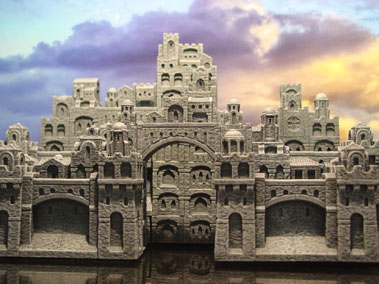 | 2. | Before gluing your wall blocks, check the back side of them to see if they are concave. If you can see an edge around them, lightly sand them so you have a better surface to glue to. While painting this castle, there were two places where my model came apart. Both places were where the castle wall surface was glued against a tower side. I had no problem gluing the bottoms of the other blocks down when stacking them so I think these are the only blocks you need to worry about sanding. |