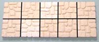 | 1. | You will need the following decorative pieces. From mold #70, 8 small arches. From mold #80, 8 twist stands. Glue a 4 x 5 grid of floor tiles to a piece of cereal box. Do not glue the tiles in red! |