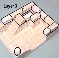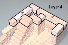 | 4. | Glue the back wall to the base and add the blocks onto the side and front. Mirror these blocks on the other side as well. Don't glue the columns down until after you paint the model. |