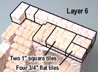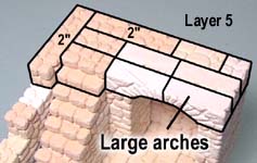 | 3. | Glue the large arches and additional blocks onto the top of the back wall as shown. If you run out of 2" pieces, just use more shorter blocks instead. |