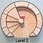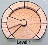 | 1. | For the staircase you will need these pieces. From mold #70, 8 angle blocks and 1 skull. From mold #72 you will need 6 circular step blocks. For specific information on the circular pieces, refer to the 4" Fieldstone Tower instructions. |