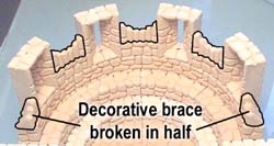 | 6. | Place this slab over the arch but do not glue it into place. You will need to remove it so you can paint under the arch easily. Also, you will want to access this place later on to show the secret passage from the inside. Also add the other blocks around the outside wall as shown. |