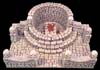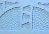 | 1. | For the room you will need these special pieces. From mold #70, 2 medium arches. From mold #72, 4 transition pieces and 2 circular stair pieces. For information on the transition pieces, see the page about mold #72. Glue together the floor tiles as shown to form the base. |