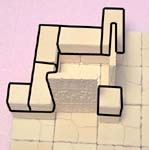 2. | Glue the floor tiles onto a piece of foam board. Notice that I'm using some of the smaller floor tiles in the upper left corner. Glue the wall blocks around the outside as shown. |