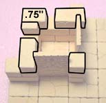 7. | Glue the remaining blocks on the room. When dry, paint the room before you glue in the secret door. Place an 1/8" dowel rod in the wall and glue the thin blocks on top of it. Do not glue the dowel in place. It must turn freely or the door will not work. |