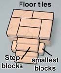 4. | Glue on the remaining blocks and pillars as shown. Glue the four floor tiles on the top to cap off the little building. |