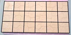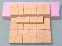 2. | Glue the floor tiles shown down to a piece of foam. Do not glue down the large panels. Here I'm using tiles from mold #291. Remove the panels and cut holes in the foam slightly smaller than you need. That way the panels will have an edge to set on. You'll have to do a little extra cutting to get the stairs and floor tiles to fit down into the holes. |