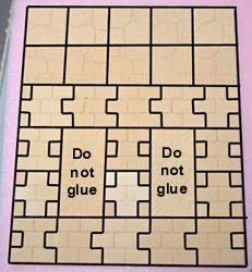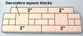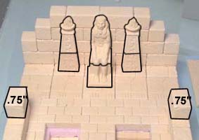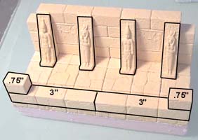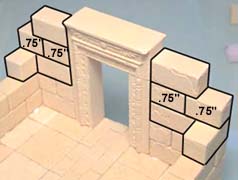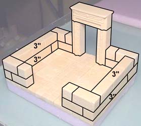 For this floor, I've used decorative tiles from mold #291 for the center and tiles from mold #292 for the rows on each side of center. If you do not have these decorative molds, just use regular floor tiles instead. Glue the wall blocks and door frame down to the floor as shown. |