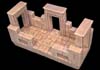 These are placed in the back wall. Notice that a couple of the 1" long blocks are turned on end on each side of them. The blocks labeled 1" reach behind a square block in front of them. Glue a row of small bricks (from the floor tile mold) on the front of the waterway entrance. |