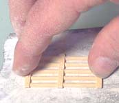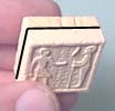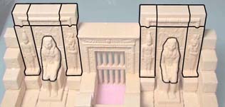 2. | The floor section above uses decorative tiles from mold #292. If you do not have this mold, use regular floor tiles instead. Glue four wall blocks onto the back of the sitting statue. When it's dry, sand the bottom of this so it can move inside the doorway easily. Sand down the insides of the two doorway sides (the scraped side of the blocks). You want to do this so the statue will easily fit into the doorway. |