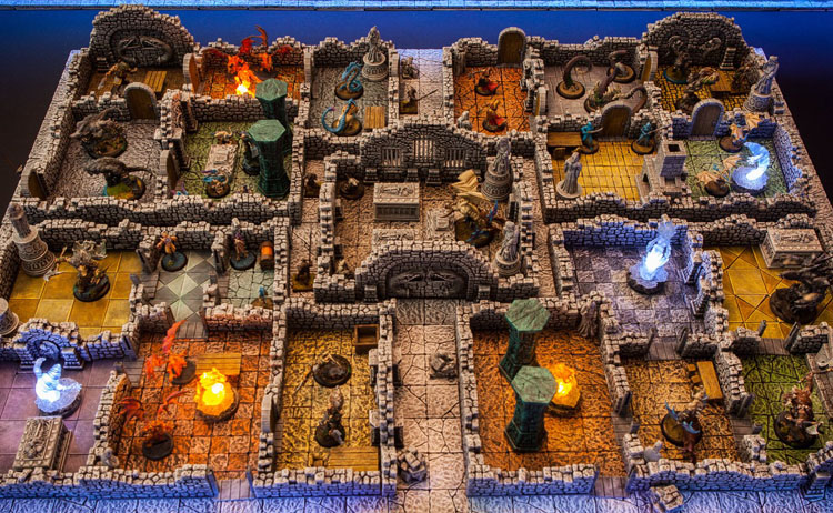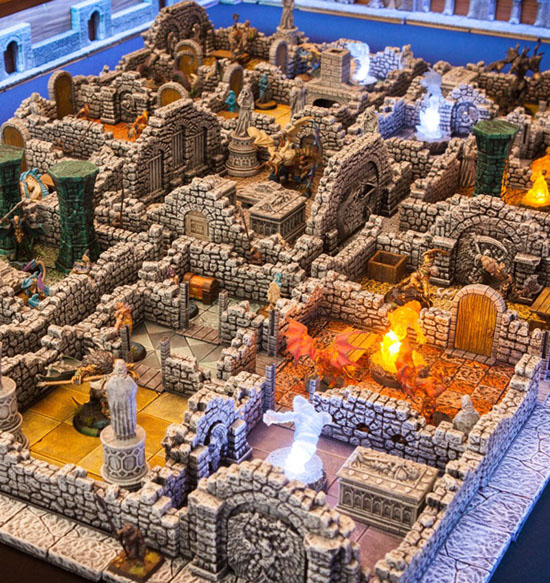 | Super Dungeon ExploreBy: Bum Yong Kim Background: For continuity's sake, I considered using only the cavern molds but the nature of the game warrants variety. I've used the same color for all of my floor pieces so that it ties the thing together. Also, all of the transition pieces are made using the fieldstone blocks so that too will tie the pieces together. |