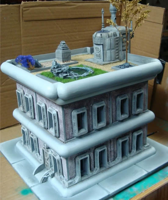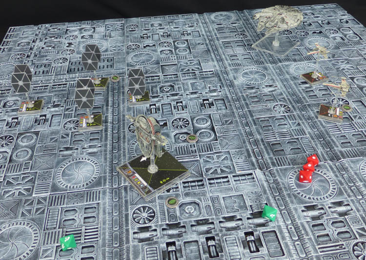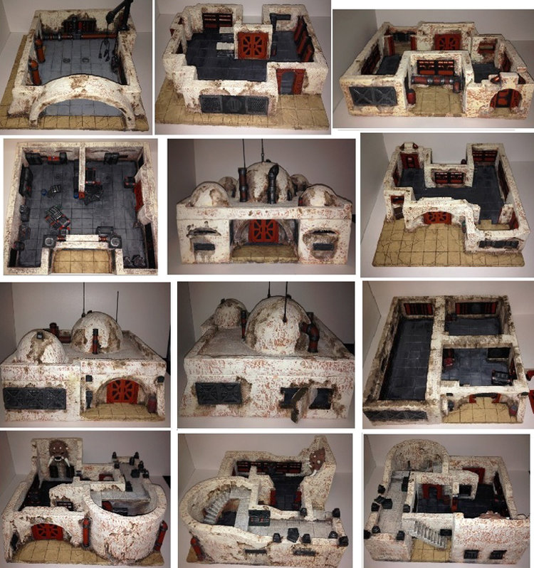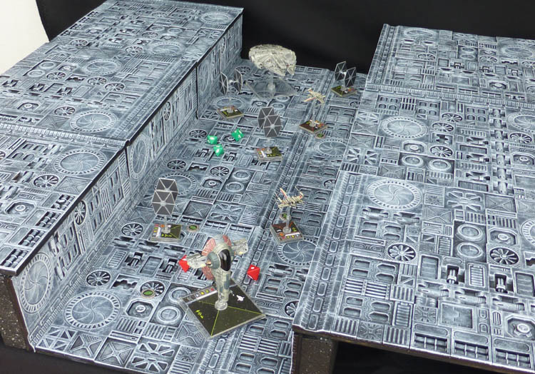 Death Star TrenchModels used: Star Wars: Imperial Assault by Fantasy Flight Games. By: Alberto Sánchez Vélez (Dr. Metalurgico). Web Page: You can view many more photos of this and his other projects here. In these photos you can see the main molds he made by assembling various Hirst Arts sci-fi pieces plus a few others (I think I see a grate door from an Egyptian mold in there). Then he was able to cast large sections to quicky cover his gaming table. |