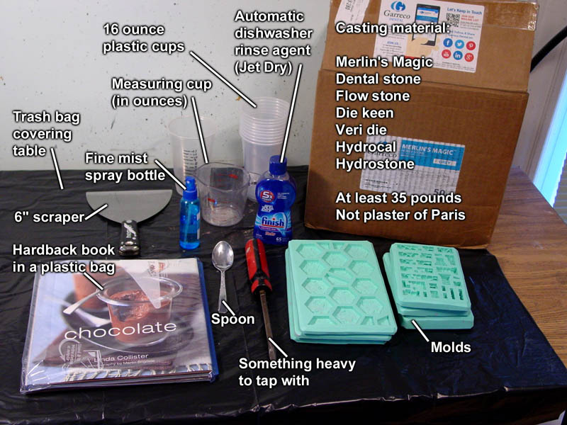 | 2. | This photo shows the tools and materials needed to complete this project. Click on the photo for a larger view. For complete casting instructions and for a list of other casting materials visit our Casting Instructions page. |