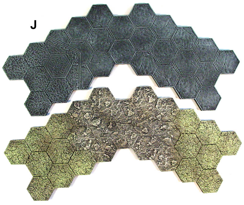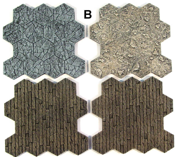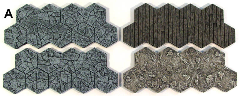 All of the hexagon floor tiles used under the walls will be the rubble stone from mold #179.