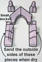 3. | Glue together the arches as shown. Sanding the tips off will allow them to butt next to each other. The filler pieces will need to be sanded to fit. You want the bottom of the arches and filler pieces to be straight. |