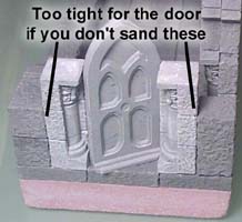 You will need to sand the outside sides of the door frame (with the small bricks on them) or your door will not fit in the doorway. |
