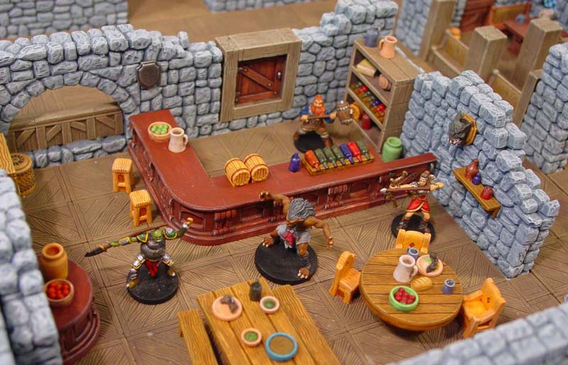 The hero and monster figures shown are from the Descent board game from Fantasy Flight Games.