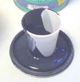 4. | I'm using 3 ounce plastic cups to dip the paint out of the can. Scrape the side of the cup off using the inside of the paint can. This will keep the paint from dripping. Pour the paint into a reusable measuring cup. To make one of these, go to my Tips & Tricks 13 page. |