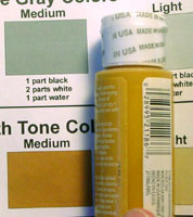 2. | Mixing the paint is easy. However, I can send you color chips of the grays shown here. When you place an order, just send me an e-mail that you want color chips and I'll send them out with your molds. You can also mail me a self addressed stamped envelope, and I'll send you back some color chips. You can take these chips to your local paint store and they can mix these colors for you exactly. |