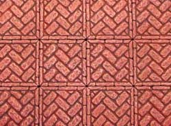 4. | Next take black paint and gently dry-brush it across the surface. The paint should be about the thickness of regular house paint. To begin with, put very little paint on your brush (wipe out the excess on a paper towel) and gently brush across the surface of the tiles. Be sure to brush across the cracks and not in the same direction as the cracks. Brushing across the cracks will leave them open and clean so the red will show through clearly. As you dry-brush, you will notice that the surface of the tiles will not fill in. That's OK for now. Just dry-brush until all of the cracks are outlined in black. |