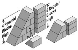 The second photo shows the pyramid blocks. Use a straight edge to help keep the rows straight. |