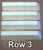 | 11. | Here are the rows you want to pre-glue for the fourth level. The first photo shows rows of regular blocks for the inner chamber. The second photo shows the pyramid blocks. |