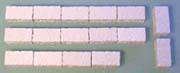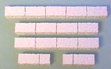 | 1. | To make the job go easier and faster, you need to pre-glue several strips of blocks together. This will ensure that your walls don't sag later on. When gluing each strip of blocks, place a straight edge behind them such as a ruler or a book. On row 1 you have 6 regular blocks and 1 corner block. On row 2 there are 5 regular blocks and 1 corner block. Each row will have one less block in it. |