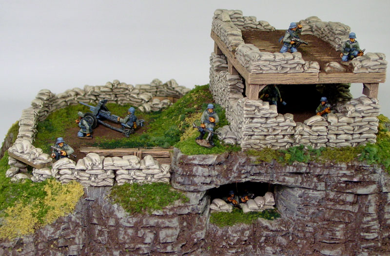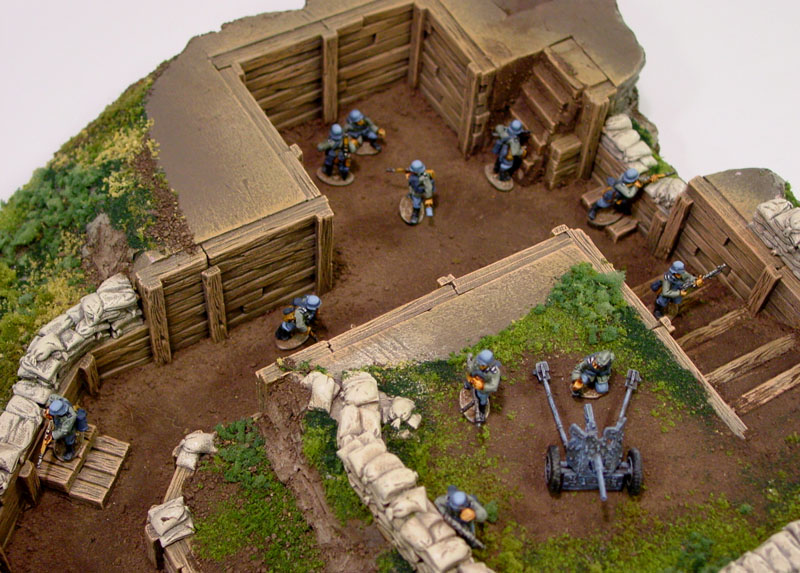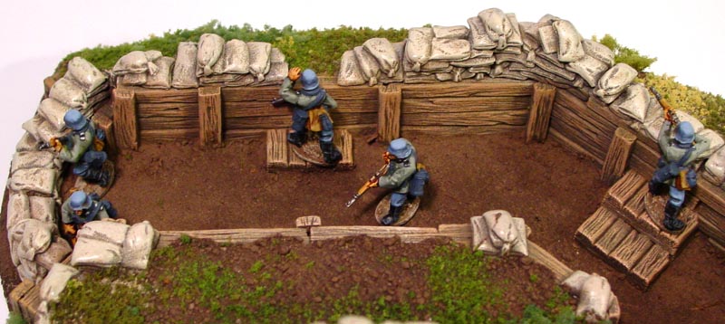 Click on the photos to see a larger version. You can find complete information about the sandbag mold and the trench plank molds on our Tips & Tricks 32 page. The German soldiers you see here are Bolt Action figures from Warlord Games. These soldiers are 28mm in scale and measure about 1 1/4" tall. These soldiers were painted by GRG3D and he did a really nice job on them. |