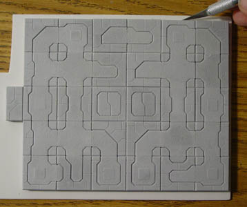 | 2. | Glue the following floor tiles down onto a piece of thick card stock or matt board. This is optional but I though the center could use a little extra support. After the glue dries, cut around the outside using a hobby knife. ![]() |