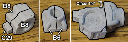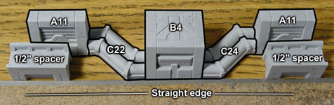 | 17. | Glue the B8 blocks bottom to bottom and set them so the angle is facing upper left, then add the C29 block. When adding the B6 blocks, be sure they are offset by 1/4". |