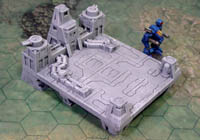 | 8. | We will finish the landing pad by adding the final top block and all of the decorative blocks on the floor. The ends of the hoses start under the center of each bridge pieces. The top block is set back so the back of the block is flush with the block underneath. |