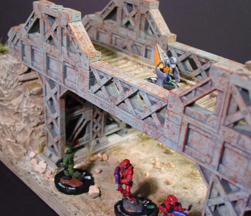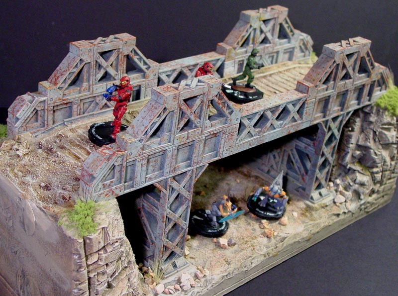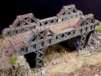For instructions on painting the bridge and doing the rust effects, go to the Painting Instructions Page. Here are a few finished photos of the bridge. Click on the photos below for a larger view.