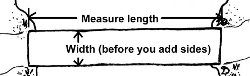 9. | Now for the supports. Most small bridges will not need supports but you may need them if your bridge seems a bit too long otherwise. The height will be the measurement from the bottom of the bridge to the floor of the canyon. The width will be the total outside width of the bridge. The thickness is the side of the support that you will see when looking at the side of your bridge. The thickness can be any width but it should be the most decorative part of the support since it's the side you are always going to see. |